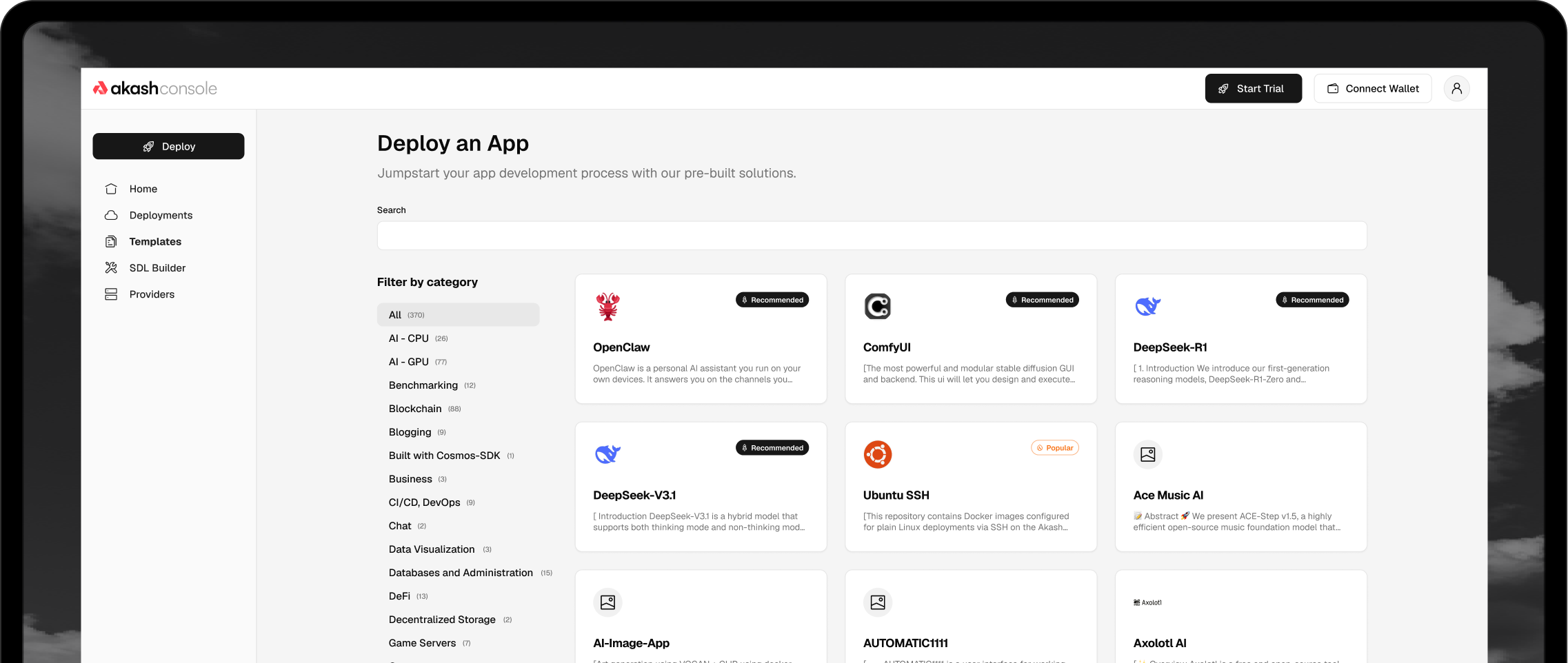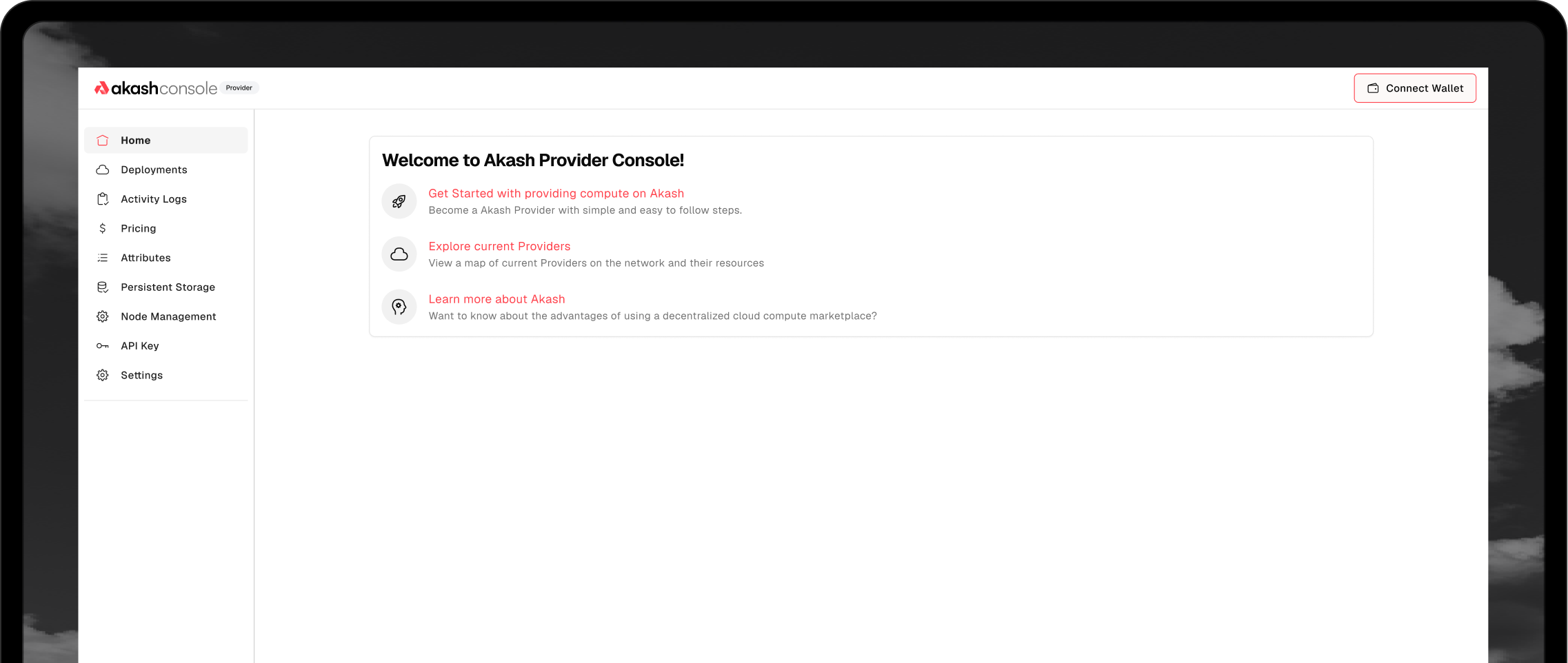 Email, or Wallet. Pay with Credit Card, USDC, or AKT.